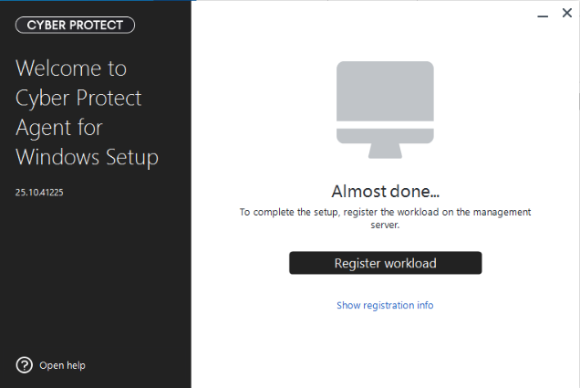 Option 1: Click on Register workload if you want to perform the registration by signing-in to the Acronis Cyber Protect dashboard on the target machine itself.