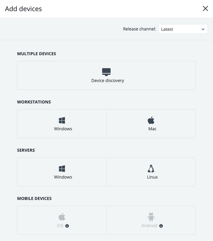 If you are installing the agent for a Windows virtual machine, you will want to look under SERVERS and choose Windows