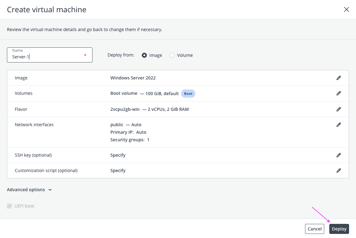 5. Next to Image, click Specify to choose a Windows image from the selection page (example: Windows Server 2022).